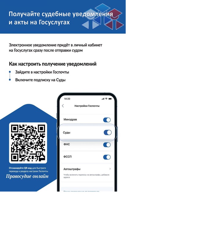 ПОЛУЧАЙТЕ СУДЕБНЫЕ УВЕДОМЛЕНИЯ И АКТЫ НА ГОСУСЛУГАХ